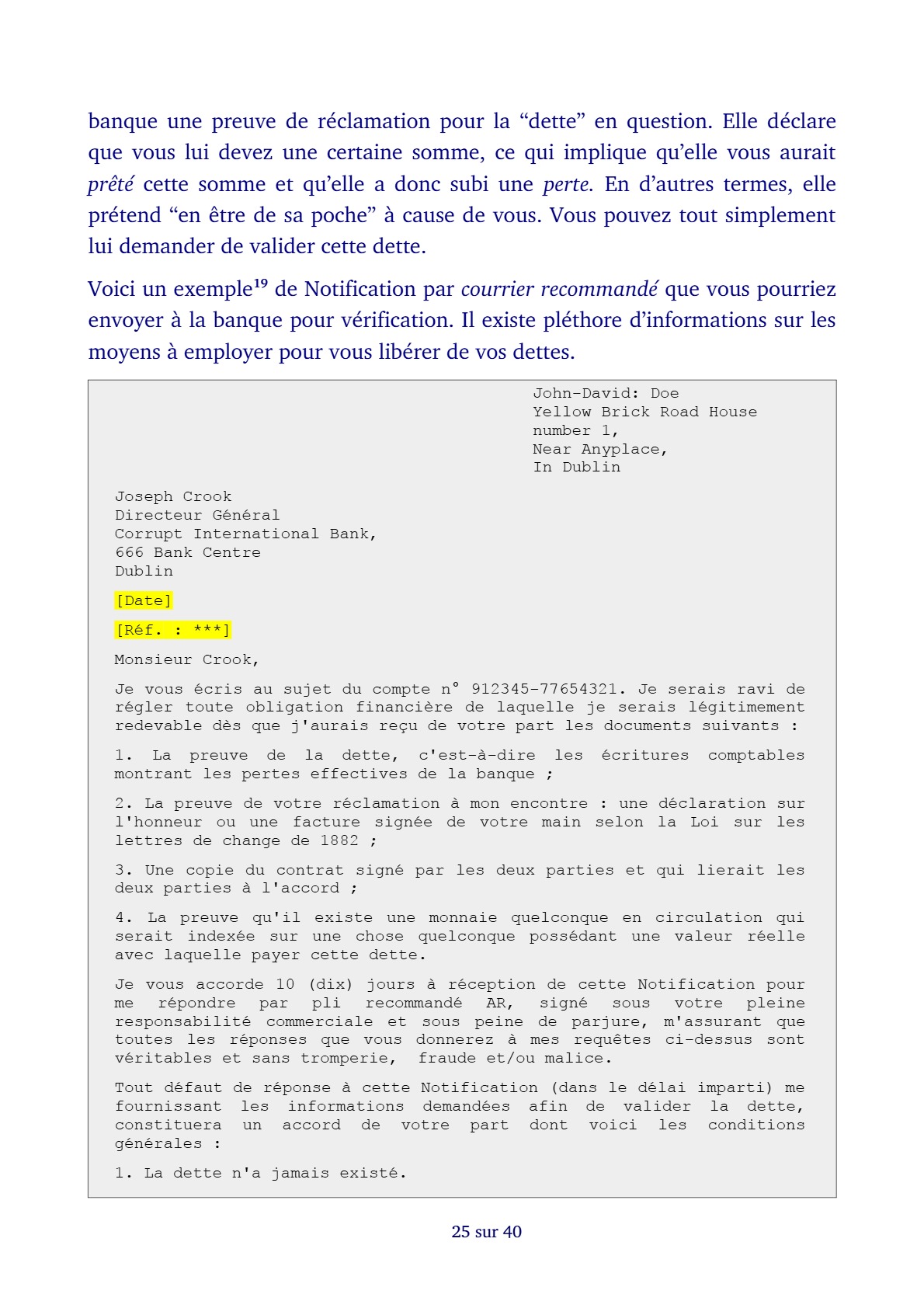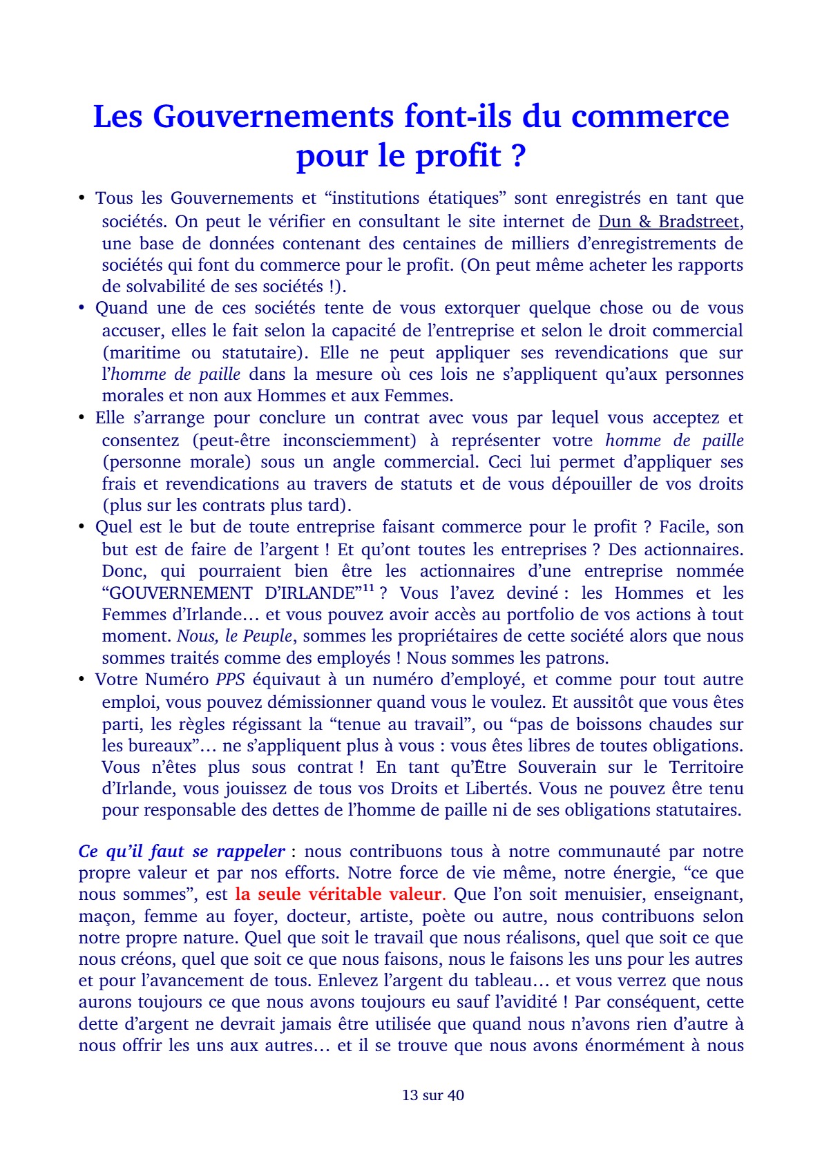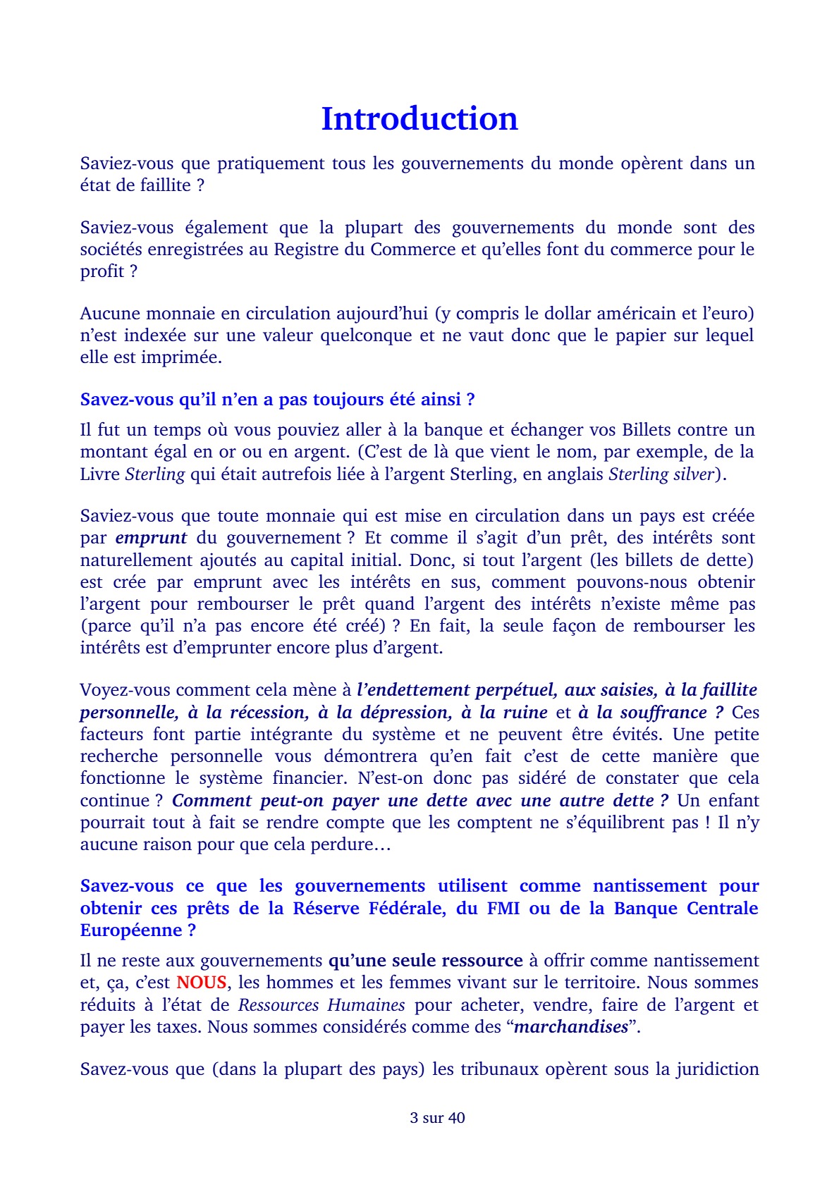 Salut Eydan, Merci pour ton signalement. Comme je ne peux revisiter chaque soir (ou matin) l’ensemble des 388 atricles (à ce jour), c’est grâce à vos signalements que je peux rétablir dans les 12 à 24 heures maximum une vidéo qui aurait été supprimée de sa plateforme d’origine. Ce qui est très souvent le cas avec les sujets abordées par ce site, surtout celles hébergées sur YouTube. C’est même une des raisons d’être de ce site. Contrer la censure et rendre ou laisser accessibles les infos que ce système Mafieux ne souhaite pas que nous Connaissions. Toutefois, pour la présente publication, il est normal que tu ne trouves pas de vidéo, car il s’agit uniquement d’une publication “Livre PDF” à consulter directement en ligne. Tu trouveras néanmoins de nombreuses vidéos sur ce sujet dans cette catégorie: https://dissidencetv.fr/category/fraude-du-nom-legal/ Mais pas que, donc. Elle comporte également des livres et documents.