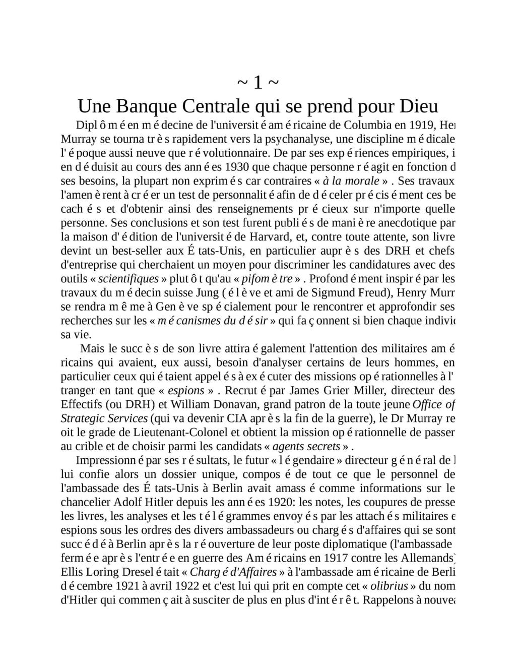 Pour la première fois, un livre montre le rôle primordial des banquiers qui ont permis de prolonger de plusieurs années aussi bien la Première que la Seconde Guerre mondiale, juste par avidité, devenant par ce fait les plus grands criminels de guerre de tous les temps.