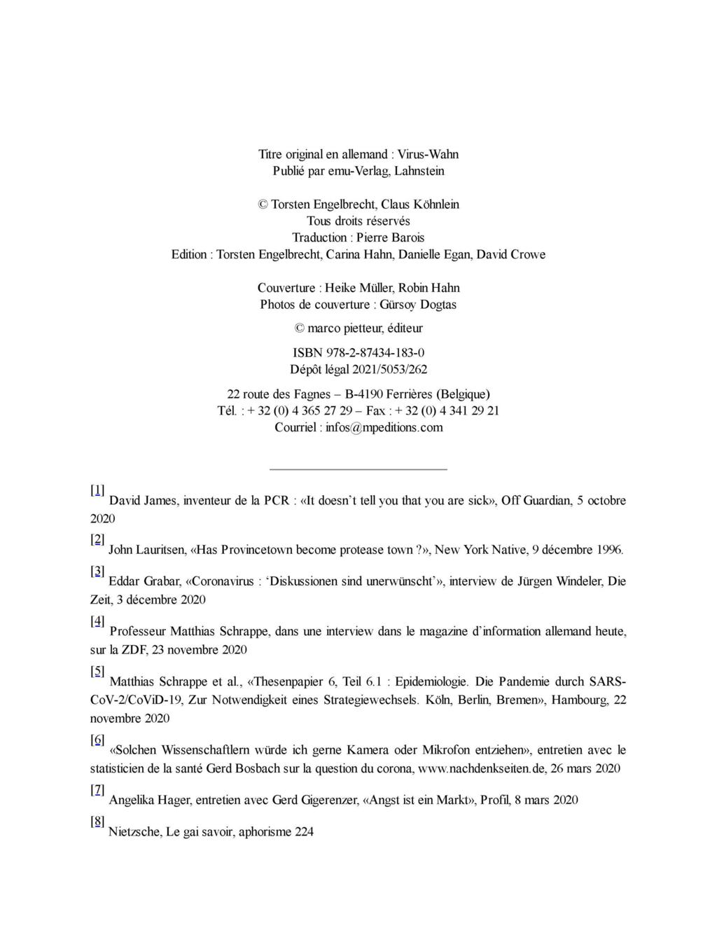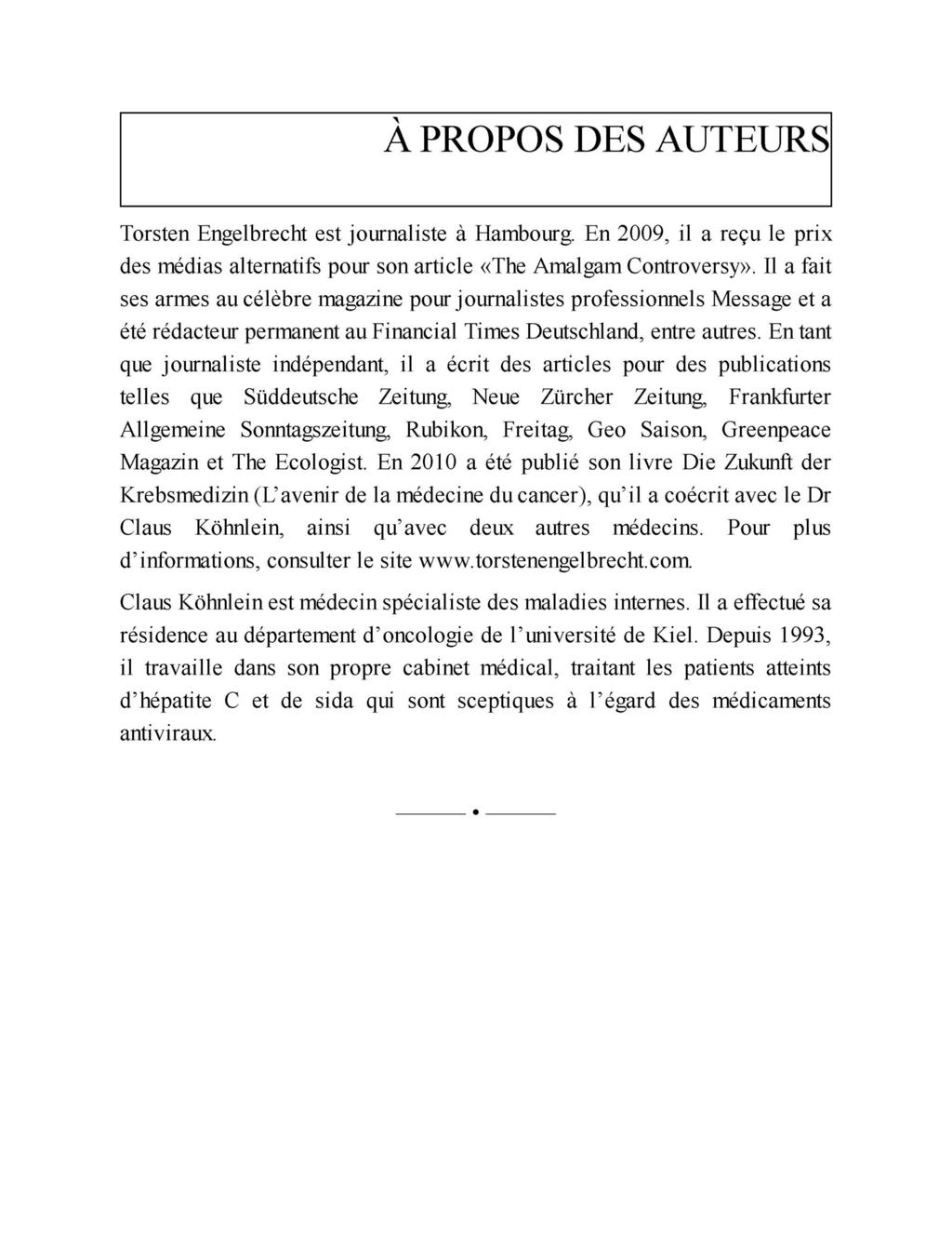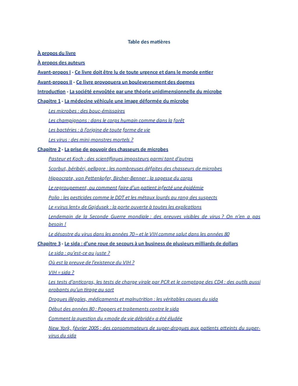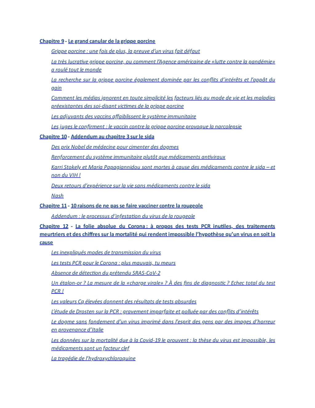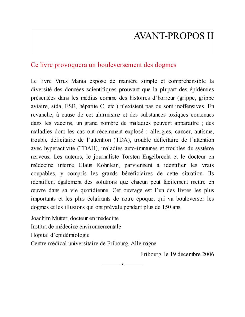 « Ce livre, Virus Mania, peut être considéré comme le premier ouvrage dans lequel les erreurs, les fraudes et les désinformations générales propagées par les avis officiels au sujet des infections douteuses ou non virales, sont exposées de manière très complète. »